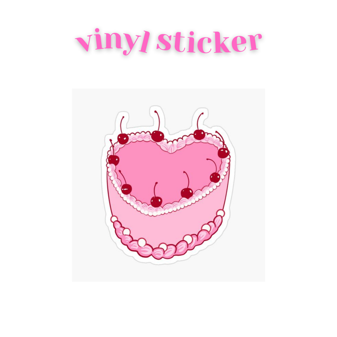 Cherry Heart Cake - Vinyl Sticker